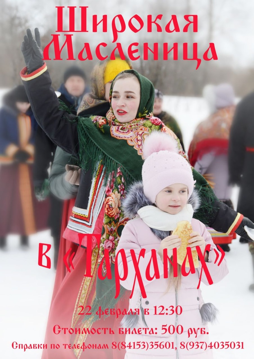 » 🥞🌞 Сегодня первый день Масленой недели. В народе ее называют Сырной, поскольку в эти дни православные отказываются от употребления мяса, но активно наслаждаются молочными продуктами, а самым главным угощением становятся блины! 🥳 Завершится неделя Широкой Масленицей – днем, когда и блины самые румяные и вкусные, и забавы самые веселые, и настроение самое праздничное. Приглашаем встретить Масленицу в русской заснеженной усадьбе, где сама атмосфера уже погружает в мир русской культуры и традиций, а уникальный опыт впечатлений станет запоминающейся страницей личной истории. 🔥 В программе: знакомство с традициями празднования Масленицы на Руси, состязания в силе и смекалке, одним из которых станет кулачный бой (хорошо знакомая М.Ю. Лермонтову и бережно сохраняемая тарханская традиция), кульминационное и всегда захватывающее зрелище сжигания чучела и, конечно, ароматные блины и чай из тарханских трав.