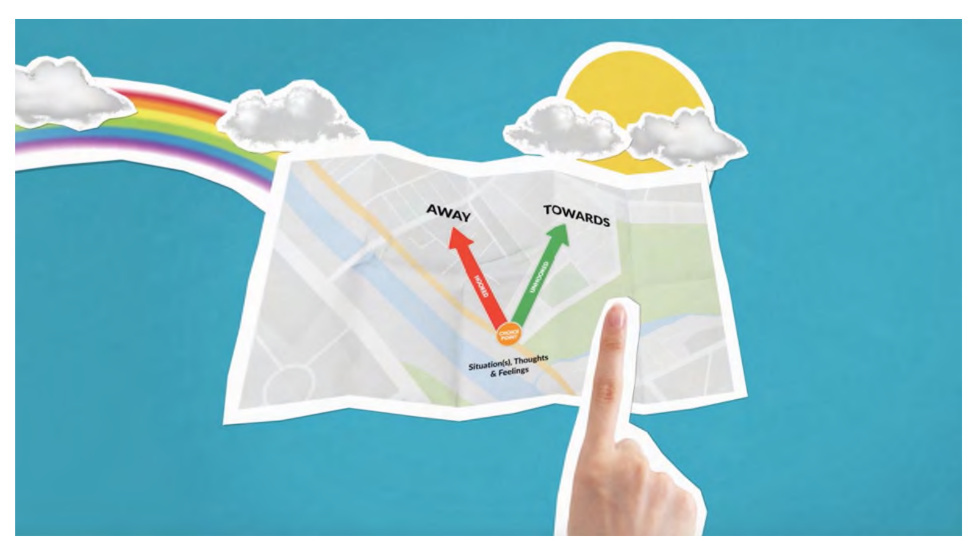 Бывало ли у вас чувство, что вы идете по жизни на автопилоте? Вроде бы всё идет своим чередом: работа, дом, привычные разговоры с партнером, выполнение родительских обязанностей… Но в какой-то момент вы ловите себя на мысли: «А туда ли я иду? Тот ли я человек, которым хочу быть в эту минуту?» В Терапии принятия и ответственности (ACT) есть гениальный по своей простоте и силе инструмент, который называется «Точка выбора». Это не просто схема на бумаге, это ваш личный внутренний навигатор, который помогает превратить реактивное выживание в осознанную, наполненную смыслом жизнь. Что такое «Точка выбора»? Представьте себе букву «V». Нижняя точка — это настоящий момент. То самое «здесь и сейчас», где вы столкнулись с какой-то ситуацией: замечанием начальника, капризом ребенка или просто накатившей усталостью. Из этой точки выходят два пути. Левый путь — это «Уход». Это действия под влиянием тяжелых мыслей и чувств (страха, гнева, самокритики). Когда мы выбираем этот путь, мы ведем себя так,