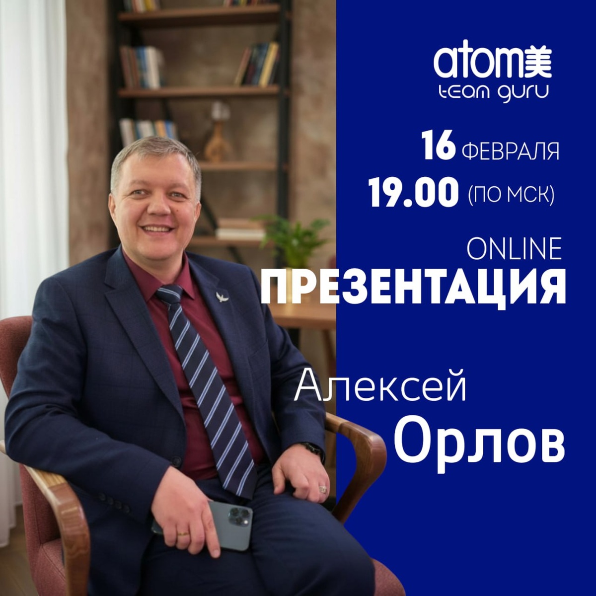 ⏰16 февраля в 19.00 по Москве Ждём ваших новичков 🙂 Прямой эфир ВКонтакте: 🔗 https://vk.com/call/join/ySgl2Dlr6uGsmBVT_MCVjJRLkG0namcGnIg9ZQQ0ZM0 🎙Спикер Алексей Орлов - Мастер Шаронской Розы Компании Атоми 🔝Член лидерского клуба ℹ️Более 20 лет опыта в сетевом бизнесе #AtomyGuRu #млм #Атоми #СетевойМаркетинг
