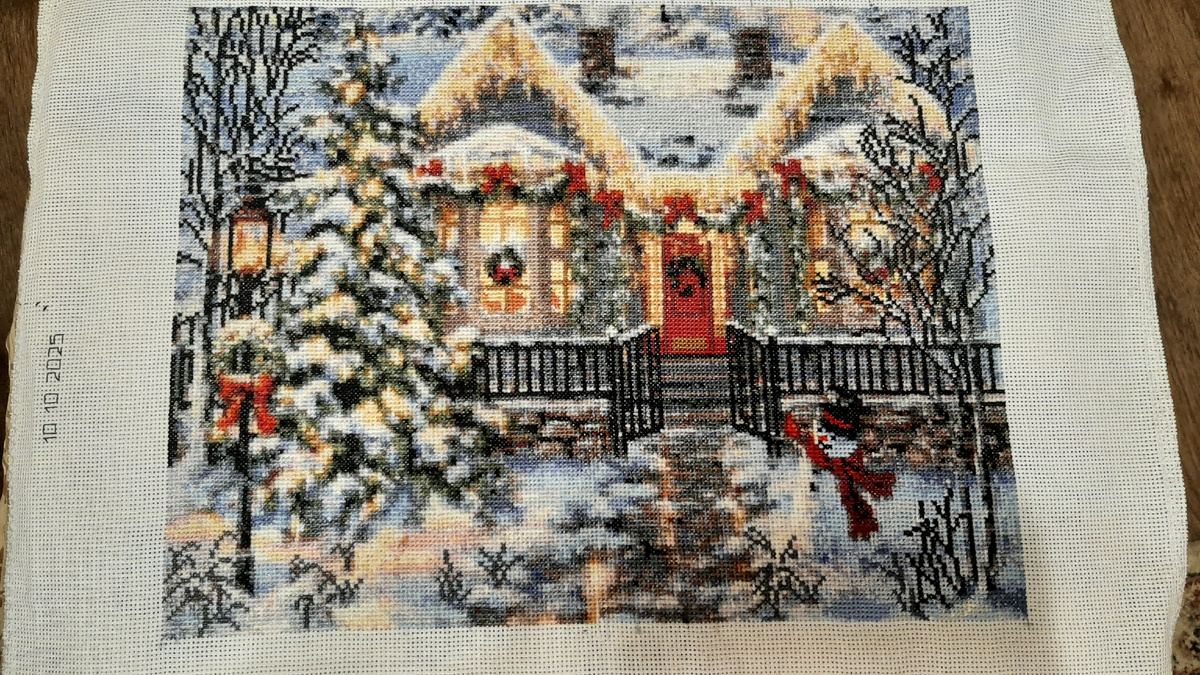 Ну вот и закончен процесс вышивки НГ/ Рождественского домика.