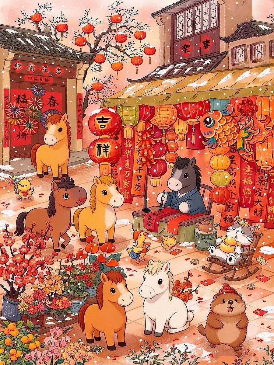 ! В древнем Китае люди верили, что конец года - не просто смена дат, а момент особой опасности. Согласно легенде, в горах и морях обитало чудовище по имени Нянь известный нам всем 年. Оно было огромным, с острыми клыками и рогами, и раз в год - в последнюю ночь старого года - выходило к человеческим поселениям. Нянь разрушал дома, пугал скот и забирал людей. Долгое время жители деревень прятались в горах, пока однажды не появился странствующий старец. Он заметил, что чудовище боится красного цвета, огня и громкого звука. Тогда люди развесили красные полотна, зажгли факелы и начали шуметь, бить в барабаны и взрывать бамбук. Нянь испугался и больше никогда не возвращался! С тех пор в канун Нового года китайцы украшают дома красными надписями, зажигают фонари и собираются всей семьёй за столом. Это не просто праздник - это самый настоящий ритуал, ночь, когда свет и единство побеждают страх. К главным символам можно отнести: ✨красный цвет 红色 ✨огонь 火 ✨шум и фейерверки 烟火 ✨семейный ужин