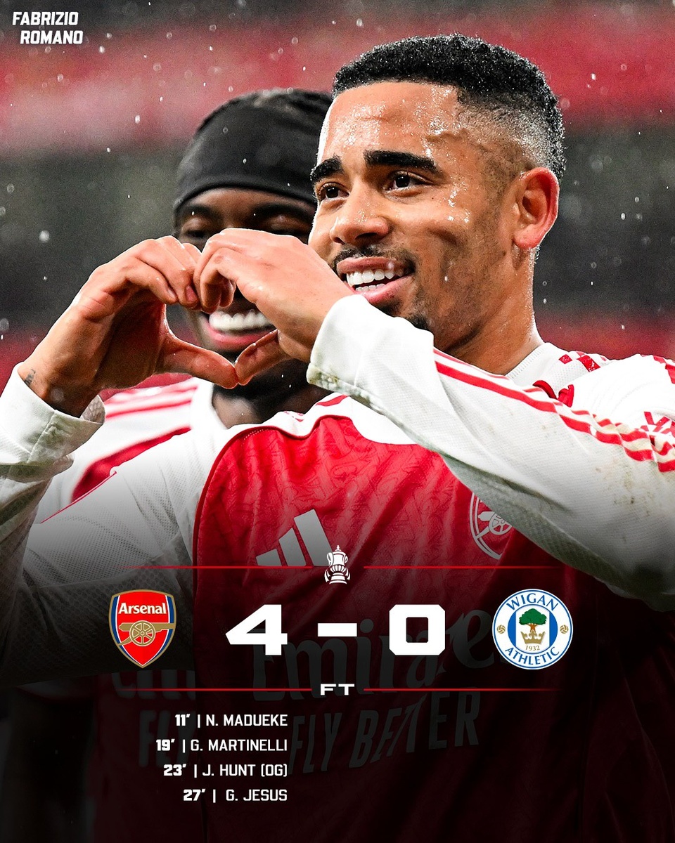 Банда Артеты решила вопрос с выходом в 5 раунд за первые полчаса. «Уиган» из 3 дивизиона оказался бессилен на «Эмирейтс».