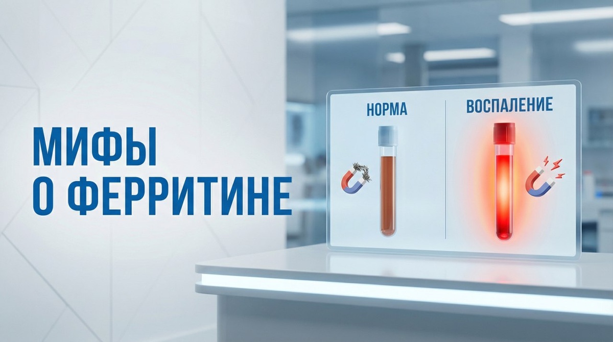 На самом деле: Ферритин – это не только склад железа, но и белок острой фазы воспаления. Если на фоне простуды, обострения гастрита или проблем с печенью цифра взлетает до 200–300 – это не здоровье. Это пожар. Организм «прячет» железо, чтобы его не съели бактерии. Пить, вводить внутривенно/внутримышечно железо в этот момент категорически нельзя.
