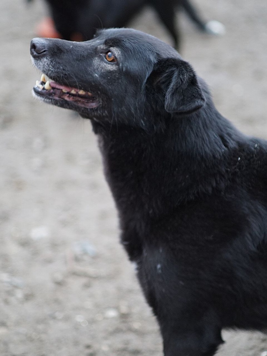 К сожалению, не гуляет за пределами приюта, но из всей троицы она самая смелая, чаще всех подходит получить свою порцию поглаживаний и полакомиться вкусненьким.