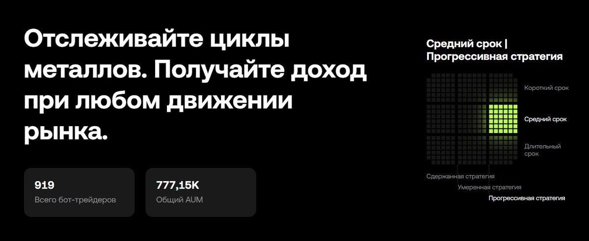 • Grid-бот для нейтральных позиций: оптимально для боковых рынков (цены колеблются в пределах диапазона). Рынок 2025 года меняется. Золото движется по своему четкому циклу, тогда как с