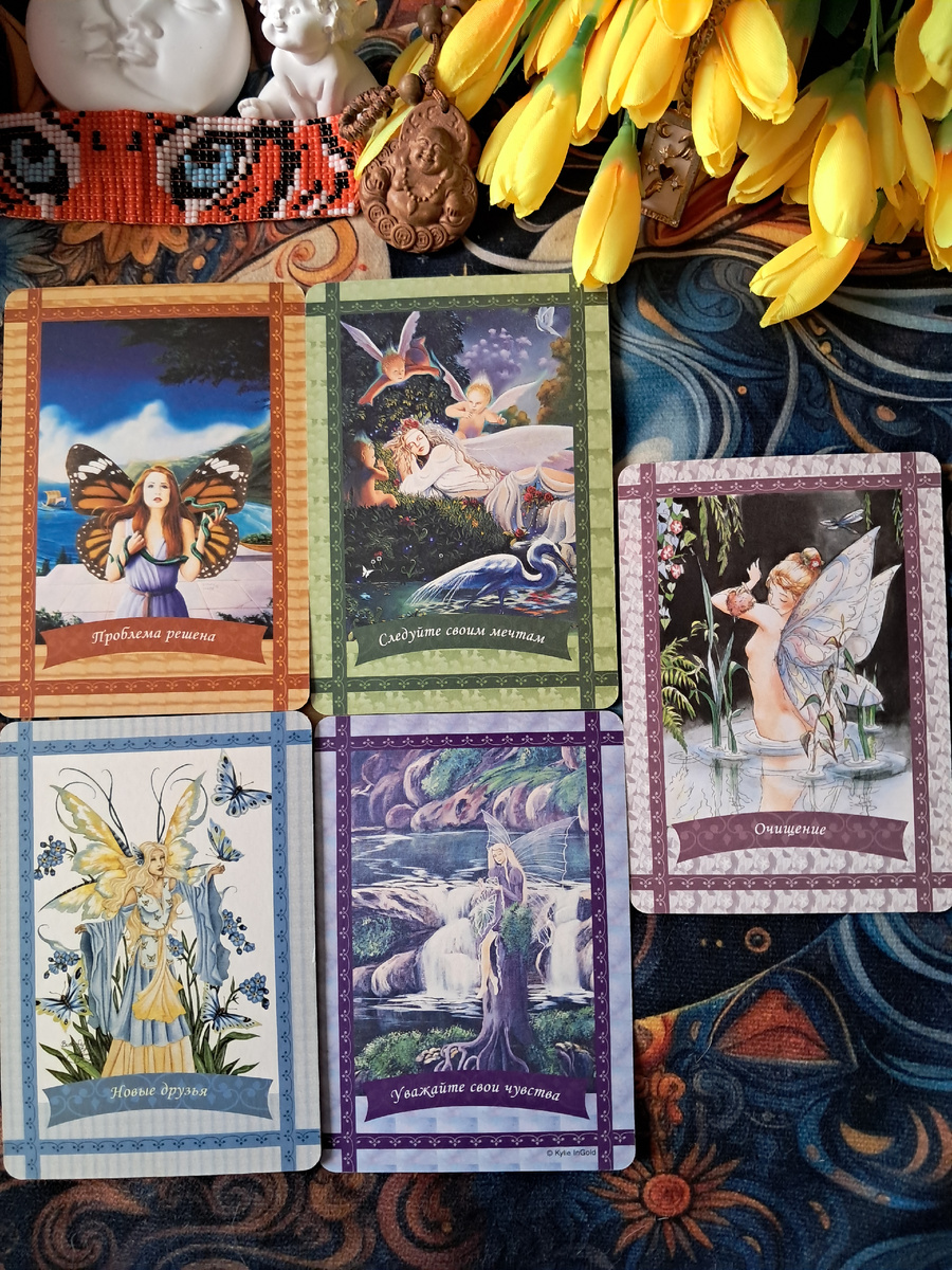Это прекрасное, легкое и очень поддерживающее послание. После глубоких и порой тяжелых кармических раскладов (Манипуляция, Вампир, Возмездие, Борьба, 9 Мечей) Феи приносят глоток свежего воздуха и волшебства.