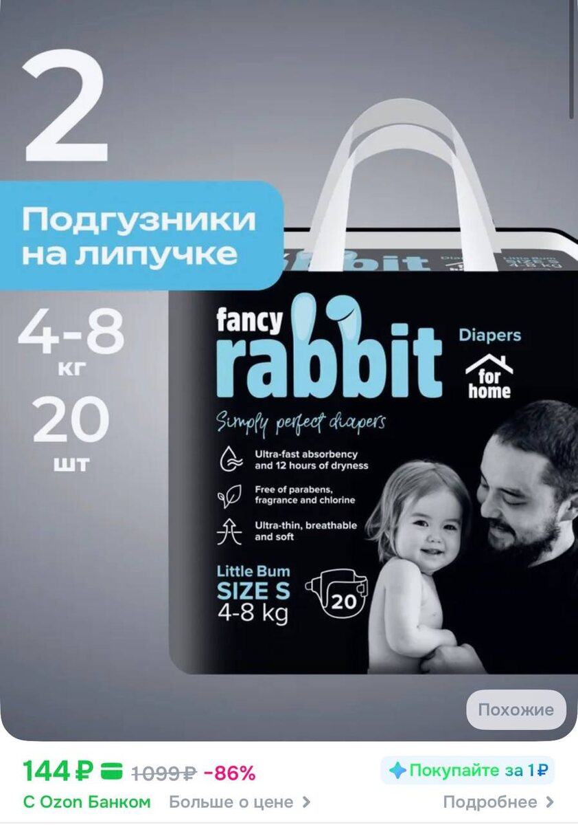 😀😀😀Подгузники детские на липучке FANCY RABBIT for home - размер 2 S (4-8 кг), 20 шт