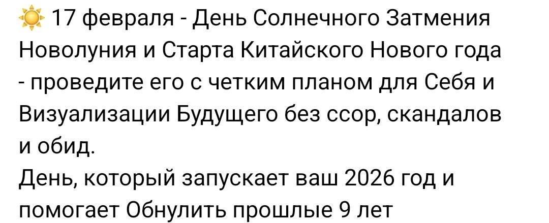 ? Каждый раз одно и то же. Новый год. День рождения. "Мощная дата". Начало китайского года. И вдруг все вспоминают про желания. Меня в этом сейчас трогает одна вещь. Почему нам нужен официальный повод, чтобы спросить себя: "А я вообще чего хочу?" Как будто без даты - нельзя. Как будто хотеть просто так - слишком нагло. Мы легко знаем, что “надо”. Надо работать. Надо быть удобной. Надо стараться. Надо не подвести. А вот “хочу”… Тут начинается пауза. Тревога. Стыд. Ощущение, что сейчас кого-то разочаруешь. Иногда нужен внешний сигнал - календарь, праздник, "энергии дня" - чтобы легализовать это право. Не потому что дата магическая. А потому что так безопаснее. "Это не я вдруг захотела больше денег. Это просто новый цикл." "Это не я решила иначе строить отношения. Это просто знак." Иногда повод - это просто щель, через которую можно осторожно выйти к себе. И, возможно, вопрос не в том, какой сегодня день. А в том, когда ты в последний раз честно спрашивала себя - без "правильн