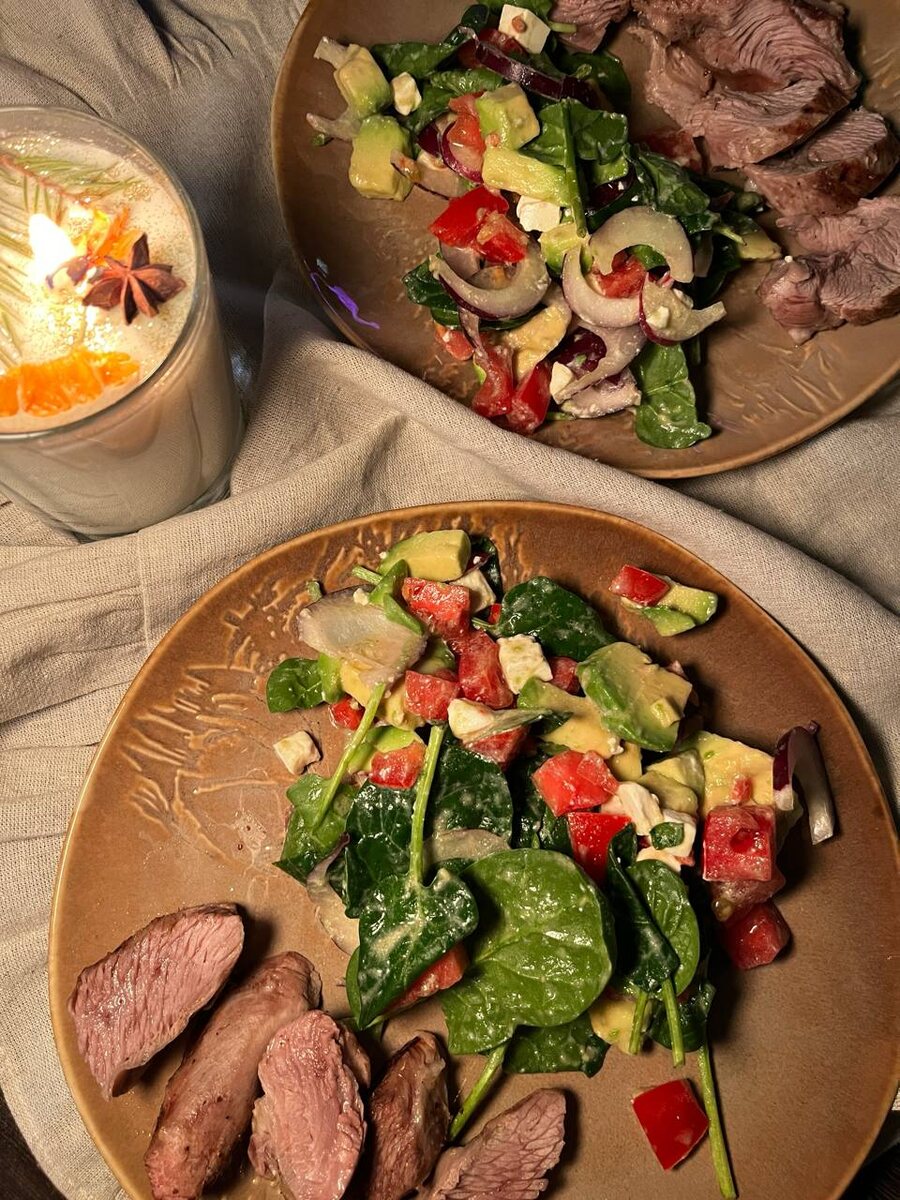 Подборка быстрых рецептов для тех, кто ценит вкус и время. Каждое блюдо готовится меньше чем за 15 минут — просто, удобно и без лишних ингредиентов. Здесь собраны завтраки, обеды, ужины, закуски, салаты и десерты. Заберите подборку рецептов в боте — и готовьте вкусно, даже когда времени совсем немного 🥬🥬🥬 Что если я вам скажу, что самый простой ужин можно собрать из того, что у вас уже есть в холодильнике? Ингредиенты: • бедро индейки • листья шпината или любой салат • фета • авокадо или огурец • красный лук (или белый) • болгарский перец Бедро индейки кинула на гриль. Если у вас нет гриля — обжарьте на сковороде😉 Самый простой салат: листья шпината можно заменить на любые листья салата, которые у вас есть. Фета — обязательно. Авокадо? Вы ещё скажете: «Ничего себе, у тебя в холодильнике валяется». Тогда замените его на огурец. Красный сладкий лук — да, я не пользуюсь обычным белым, покупаю и использую везде только красный. Но и белый вполне можно добавить, просто немного меньше. П