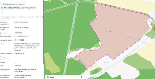 Название: Земельный участок с кадастровым № 37:21:000000:1125, с местоположением: Российская Федерация, Ивановская область, Южский