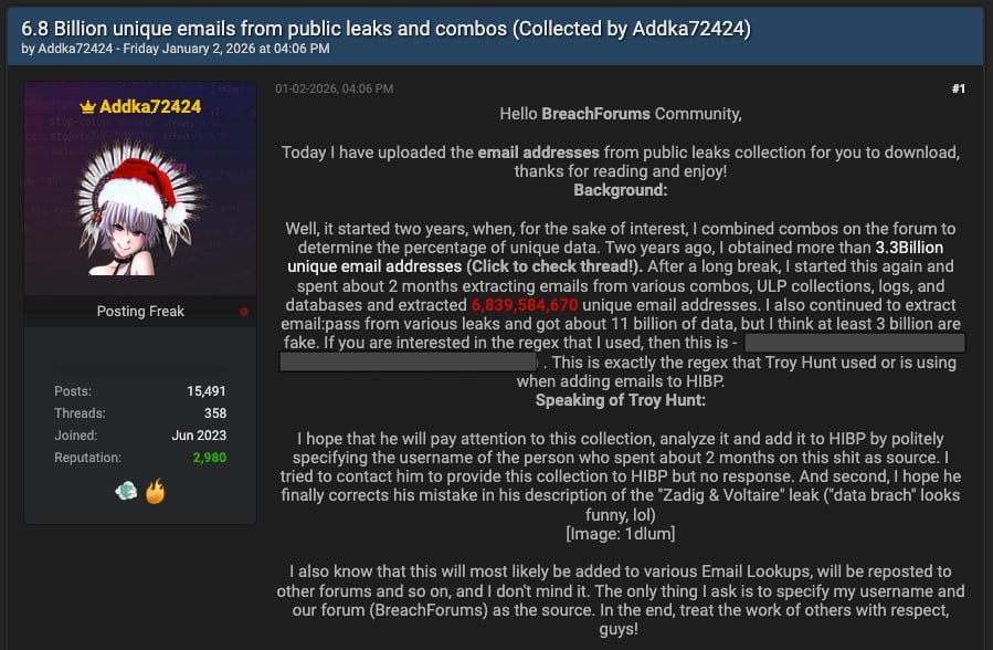⚡️ Ну что, хакеры снова на коне! В сеть утекло целых 6.8 миллиардов эмейлов — это, похоже, самый масштабный слив данных за всю историю