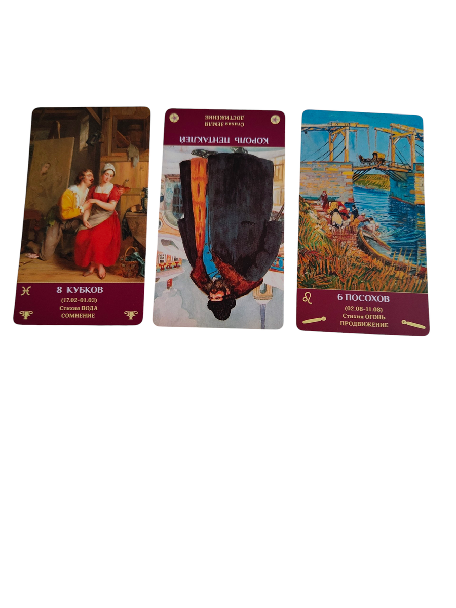 Ответ: не он. Тебе нужно завершение, определённость, иллюзия контроля, ты застряла между уходом (8 Кубков) и желанием доказать (6 Жезлов). А он — перевёрнутый Король, который не даст тебе опоры.