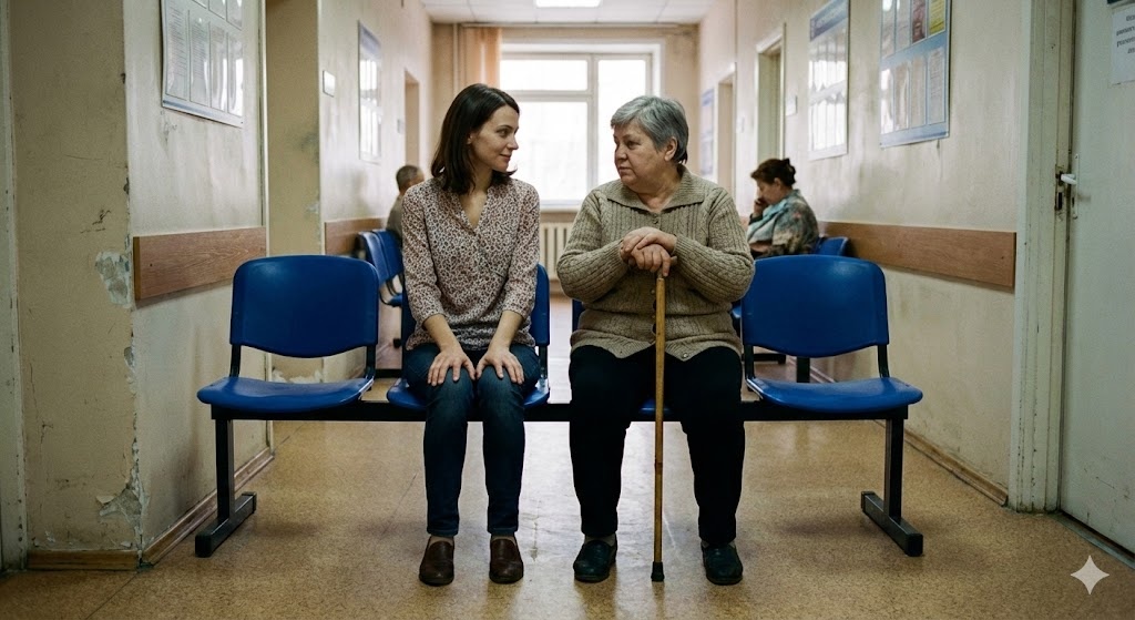 В коридоре пахло хлоркой. Пластиковые стулья вдоль стены, линолеум со следами колёс от каталок. На двери кабинета табличка: «Лаборатория. Приём с 8:00».