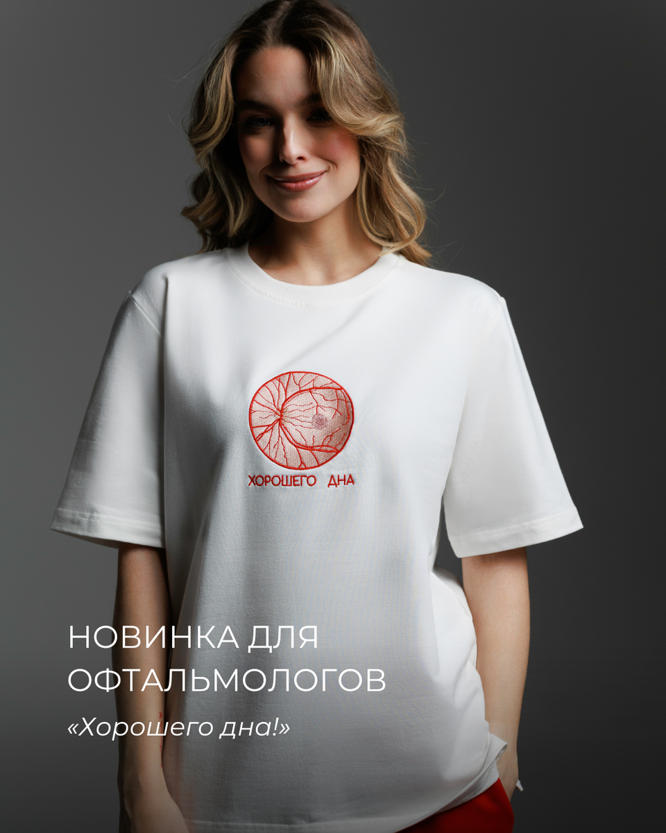 В медицине юмор — это особый язык. Его понимают только свои. Именно поэтому мы в Mariita создали новую трикотажную футболку для офтальмологов с профессиональной игрой слов: «Хорошего дна!» Да-да, речь, конечно, о глазном дне. И именно эта тонкая отсылка делает принт таким точным, интеллектуальным и по-настоящему «внутренним» для специалистов. Офтальмология — это точность, внимание к деталям и ежедневная работа с тем, что скрыто от обычного взгляда. Фраза «Хорошего дня» звучит привычно.