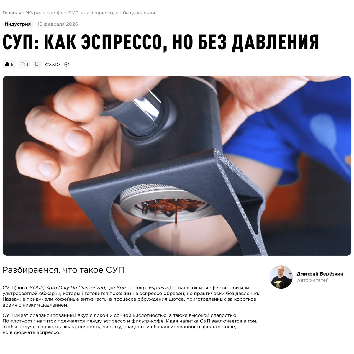 В блоге Tasty Coffee вышла моя статья: • СУП: как эспрессо, но без давления В конце статьи есть квиз ) Ссылка тут: https://shop.tastycoffee.ru/blog/sup #КофейныеНовости от @Кофезавра