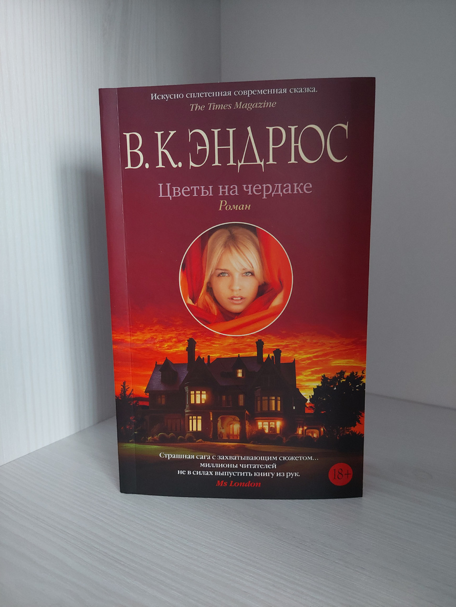 Не могу сказать, что роман мне понравился, но и что непонравился тоже. Его одновременно и интересно читать и мерзко от того, что там происходит. Пока я читала, меня коробило от неправильности происходящего. В самом начале, мы видим, как Коррина переживает за детей, как она часто посещает их и старается провести с ними как можно больше времени, затем мы видим, что эти визиты становятся все реже и реже, пока со временем она и вовсе по несколько месяцев могла к ним не приходить. Это жуткая и бесчеловечная история, где дети постарше берут полностью на себя роль родителей и заботятся о младших. Они ещё сами дети и многого не знают, но им пришлось быстро повзрослеть, так как надеяться им было не на кого кроме самих себя. Мать здесь играет роль лишь приходящую, она пышет здоровьем и красотой, каждый раз она одета с иголочки в дорогую одежду и украшения, приходя она одаривает своих детей подарками, обещает им скорую свободу и благополучно о них забывает на неопределённое время. Коррина отвратительный персонаж, к ней испытываешь отвращение ещё в самом начале, когда она призналась, что она ничего не умеет и тратила все деньги, несмотря на то, что у них не было этих денег, она по факту виновата в том, что после смерти мужа они остались с голой пятой точкой. Она всегда делала из себя жертву, как ей трудно, что ей приходится многим жертвовать ради детей, как она старается их поскорее вызволить. Но по факту она ничего не делала, жила своей новой богатой жизнью, брала от неё все, предала своих детей и даже хуже. Она ведь могла не тратить деньги на украшения, а откладывала бы их чтобы снять неподалеку дом или комнату, если не с детьми туда переехать, то хотя бы поселить их туда одних. Они по крейней мере могли бы выходить на улицу и есть горячую еду. В то время как она хорошела день ото дня, её дети чахли, там на чердаке и одной маленькой комнатке, куда практически не попадал солнечный свет и воздух, потому что им было запрещено открывать окна. За нарушение правил их строго наказывала бабушка, от избиения розгами до морения голодом. Мне безумно было жалко детей, особенно младшеньких Кори и Кэрри, мне было понятно, что сделает замкнутое пространство с Крисом и Кэти. Я сразу догадалась, что увидит Крис в комнате за библиотекой, после его находки в комнате матери, точнее отсутствия того, что он хотел там найти. Я была совершенно разбита, после рассказа Криса о том, что он узнал, что явилось причиной их постоянных недомоганий и кто этому поспособствовал. Это очень мрачная история, она буквально высасывает все соки пока читаешь, растаптывает надежду на свободу, ты как-будто заперт вместе с этими детьми, кругом преступное безразличие взрослых, отчего становится так тошно на душе. Моя оценка 8 из 10.