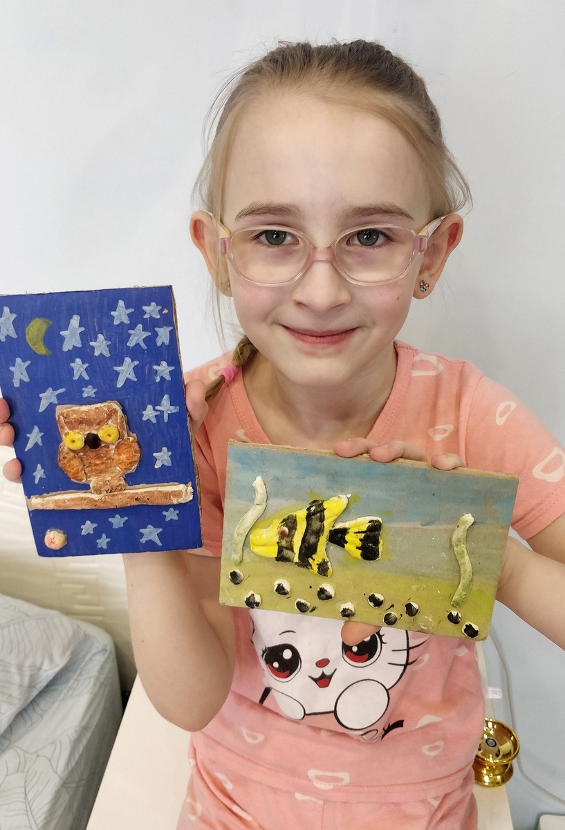 🎉 У первоклашек в третьей четверти, так как она самая длинная, есть дополнительные каникулы. Олеся у нас теперь по утрам может поспать подольше 🥱 А это почти все (самые красивые были подарены бабушке) её школьные работы из теста. У них есть там дополнительные занятия. Одно из них - лепка из соленого теста.