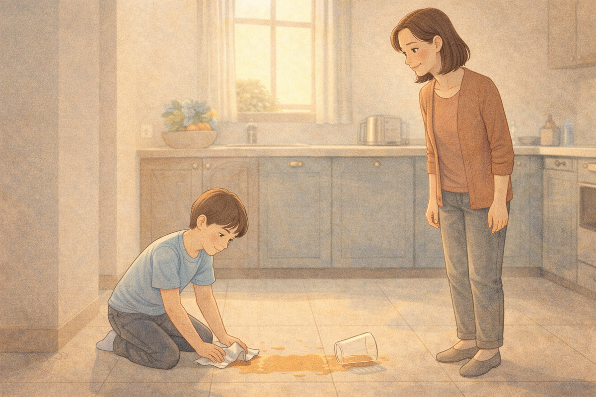 «Ты опять всё испортил», — сказала я и уже по выражению его лица поняла, что дело не в соке. Он стоял посреди кухни, маленький, с липкими пальцами, и смотрел на меня так, будто сейчас решится его судьба. Оранжевая лужа медленно растекалась по полу, но в тот момент она была не самым важным. Самым важным был его взгляд — настороженный, напряжённый, заранее готовый к упрёку. — Я нечаянно…