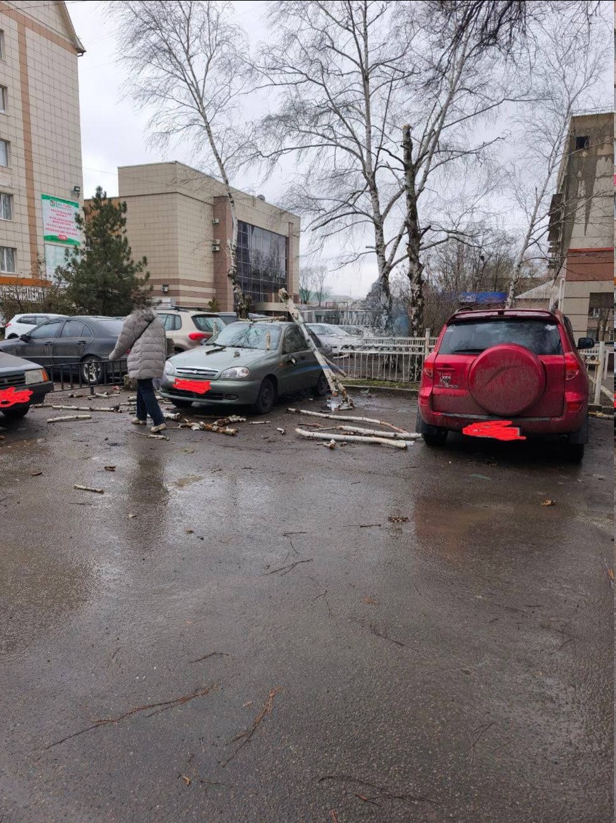 Упала берёза на припаркованные машины, возле больницы Калинина