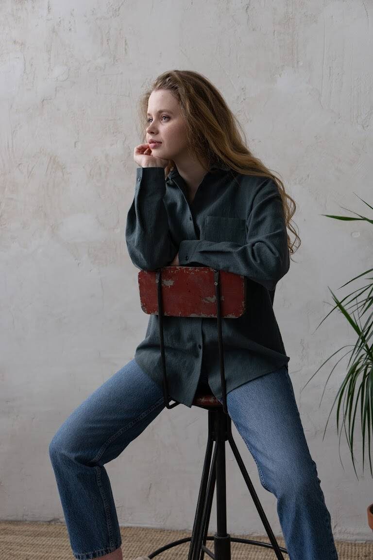 Рубашка oversize из плотной крапивной ткани.
