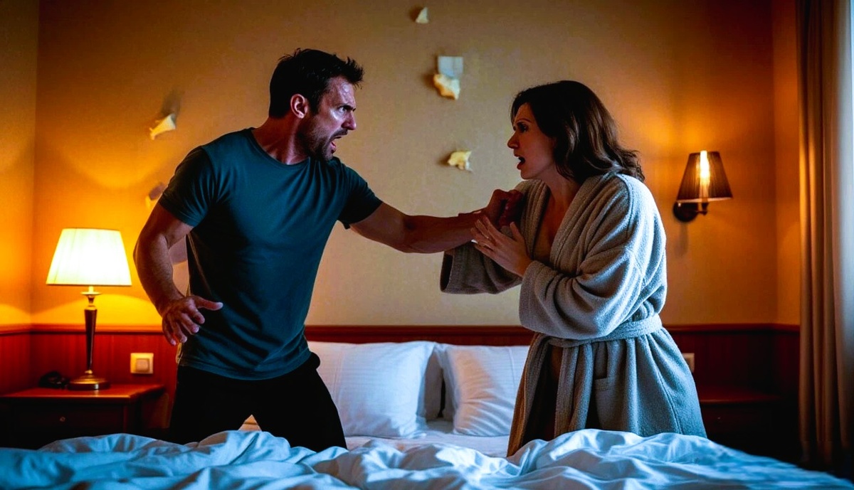 Я шагнул вперёд, игнорируя его: «Лена, пошли домой немедленно! Мишка один спит в номере, ждёт маму!» Схватил её за руку и потащил к выходу. Она слабо упиралась.