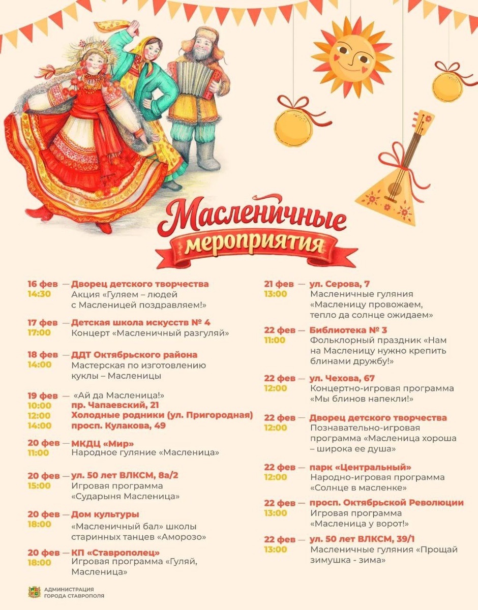 🥞 Масленицу в Ставрополе отметят масштабными гуляньями и народными забавами