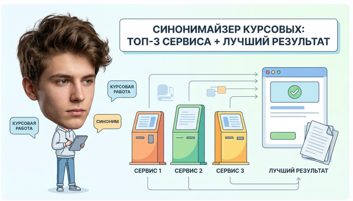 Сижу над курсовой, до сдачи три дня. Прогоняю текст через Антиплагиат.ру — 42% уникальности. Нужно минимум 70%, а лучше 80%. Первая мысль: найти синонимайзер онлайн, заменить слова и выдохнуть.