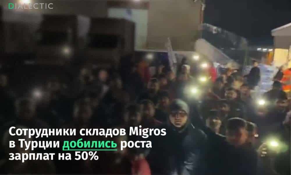 Персонал логистических центров турецкой розничной сети Migros достиг соглашения с руководством компании и прекратил 23-дневную акцию протеста, охватившую десять провинций страны. Об этом сообщает издание Yeni Demokrasi со ссылкой на заявление профсоюза. Финальный раунд переговоров завершился подписанием документов, которые профсоюз охарактеризовал как победу трудового коллектива. Компания обязалась полностью отказаться от услуг субподрядчиков и пообещала трудоустроить весь персонал в штат в Migros на постоянной основе. Стороны утвердили новую схему оплаты труда, базовую ставку подняли сразу на 28%, а в течение 2026 года проведут дополнительную индексацию на уровень официальной инфляции плюс 20%. Таким образом, суммарный рост доходов работников превысит 50%. В договоре также зафиксировано сохранение премий за стаж и непрерывность работы. Менеджмент пошел на уступки и в отношении уволенных сотрудников. Им предоставили выбор между возвращением на свои места с восстановлением выслуги лет и