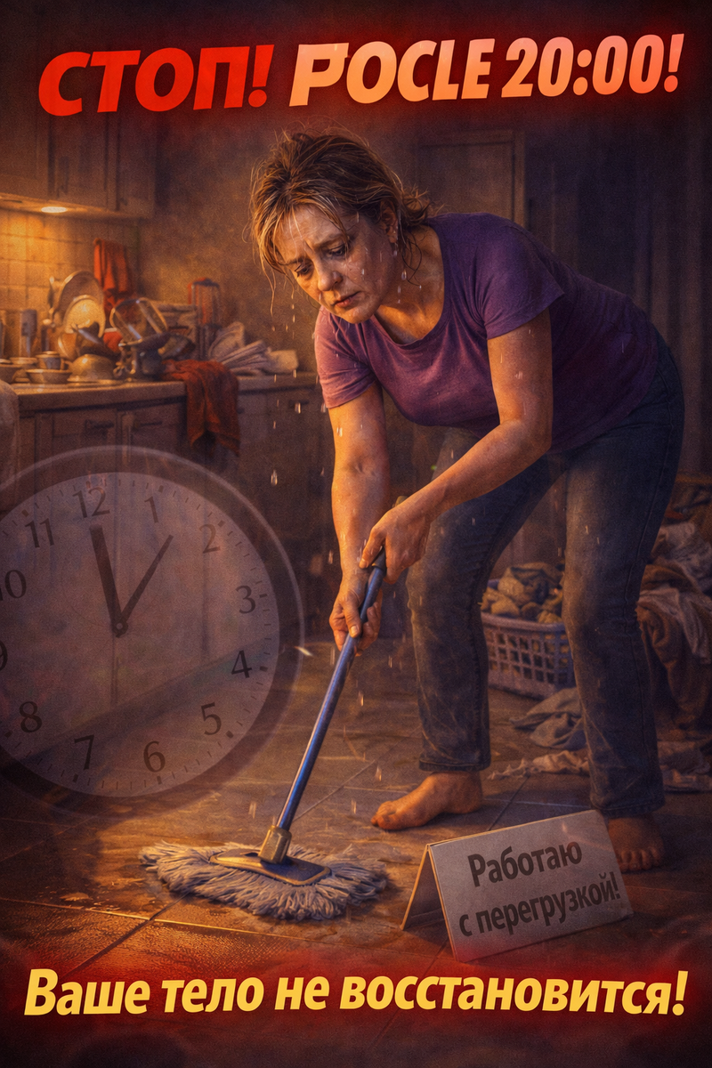Если вы в 22:00 моете полы, разбираете шкаф или решаете рабочие вопросы — организм остаётся в режиме «бодрствования». Кортизол высокий, адреналин в крови.
