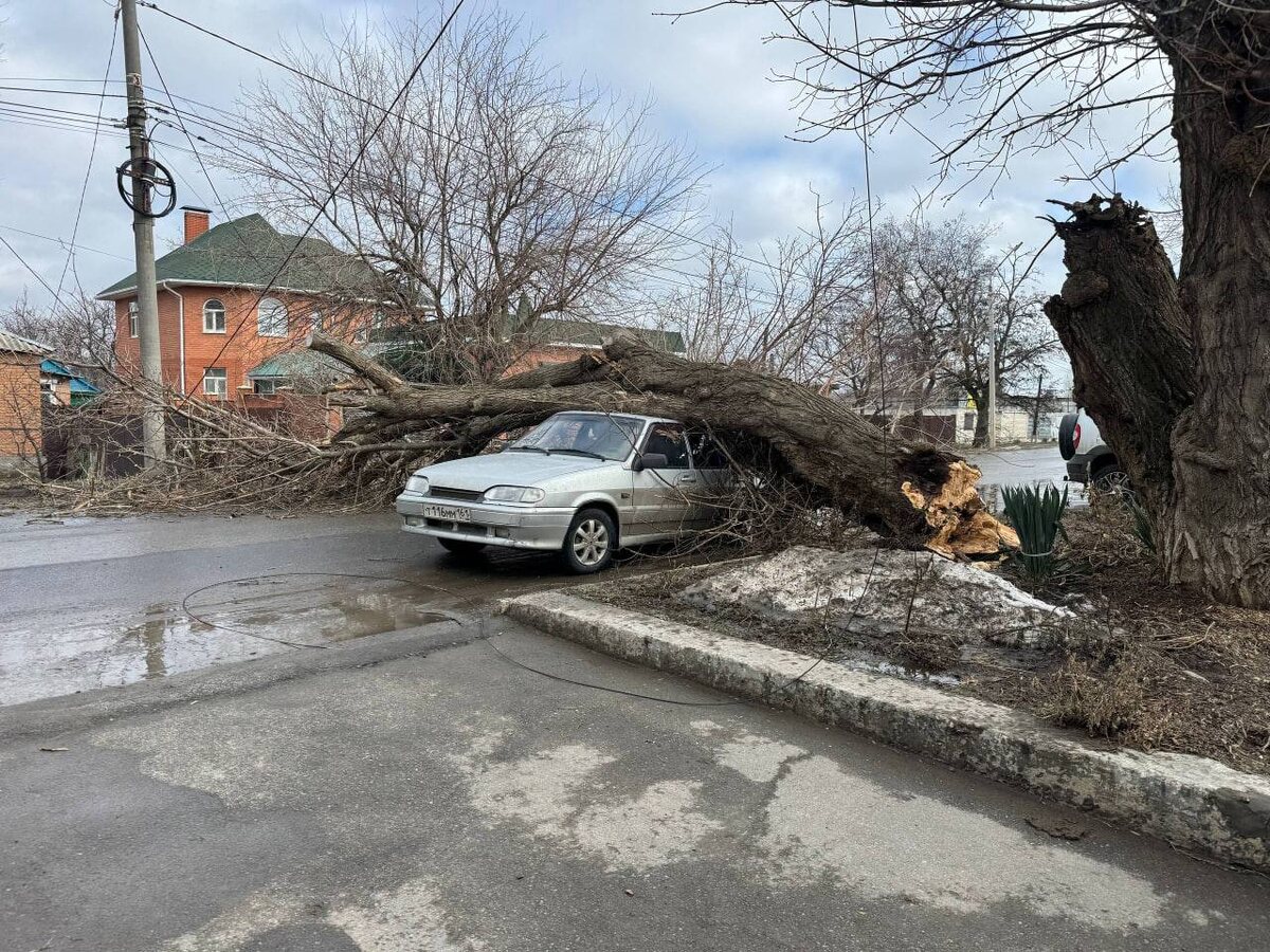 В Ростовской области гигантское сухое дерево упало на припаркованный автомобиль