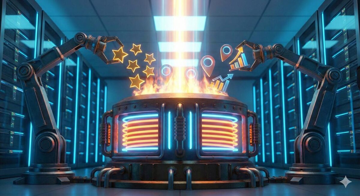 Удержать его там — остальные 80%. Самая частая иллюзия предпринимателей: «Я сейчас найму человека, он один раз красиво заполнит мне карточку на Картах, и клиенты будут идти всегда». Это так не работает. Яндекс — это не статичная энциклопедия. Это прожорливый, вечно голодный цифровой двигатель. Если вы один раз залили полный бак (оформили прайс, закинули фото) и нажали на газ, ваша ракета действительно взлетит в Топ выдачи. Но что будет, когда топливо закончится? Правильно. Вы начнете стремительно падать вниз, уступая места тем конкурентам, кто жмет на газ постоянно. Что алгоритм считает «Топливом»? — Постоянный приток свежих поведенческих факторов (клики, маршруты, звонки). — Регулярное обновление прайсов и публикация свежих новостей. — Ежедневная работа с отзывами (и нет, ответ «спасибо за ваш отзыв» алгоритму не нравится, он любит развернутые тексты с ключевыми словами). Если двигатель вашей карточки не получает эту подпитку каждую неделю — система помечает ваш бизнес как «затуха