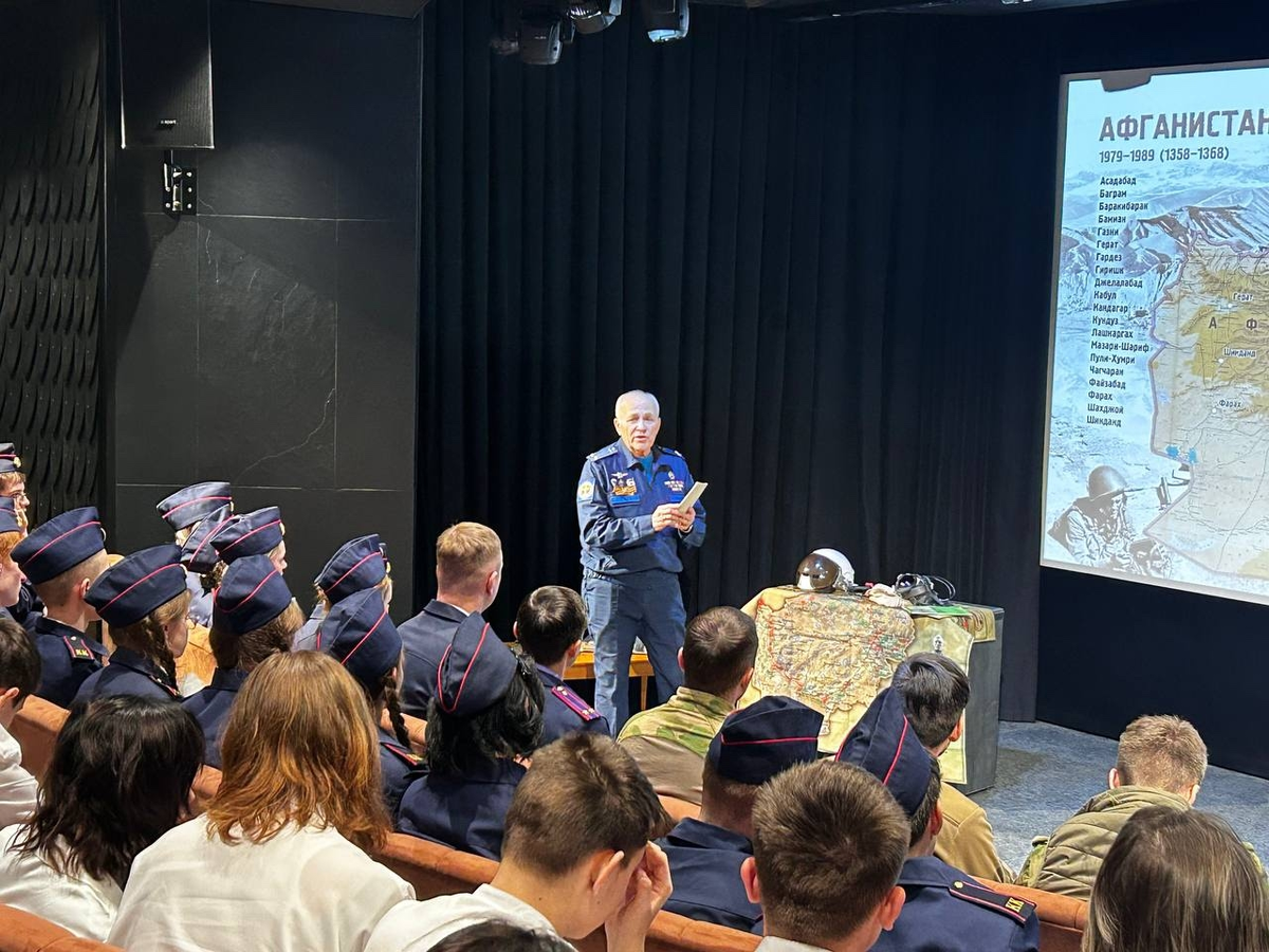 15 февраля - особая дата в истории нашей страны – День памяти о россиянах, исполнявших служебный долг за пределами Отечества. Сотрудники СК России уделяют особое внимание патриотическому воспитанию подрастающего поколения. В Белгородском государственном историко-художественном музее-диораме «Курская битва. Белгородское направление» сотрудники следственного управления Следственного комитета Российской Федерации по Белгородской области совместно с кадетами, обучающимися в МБОУ СОШ-20 города Белгорода, встретились с председателем Белгородского регионального отделения общероссийской общественной организации ветеранов Вооруженных сил Российской Федерации Валерием Александровичем Родионовым. Валерий Александрович Родионов – летчик-истребитель 1 класса, участник войны в Афганистан, был заместителем командира эскадрильи. Он рассказал ребятам-кадетам, что мечтал о небе с самого раннего детства, воплощал мечту со школы. Прыгал по программе ДОСААФ с парашютом, пилотировал планер, поступил в Ха