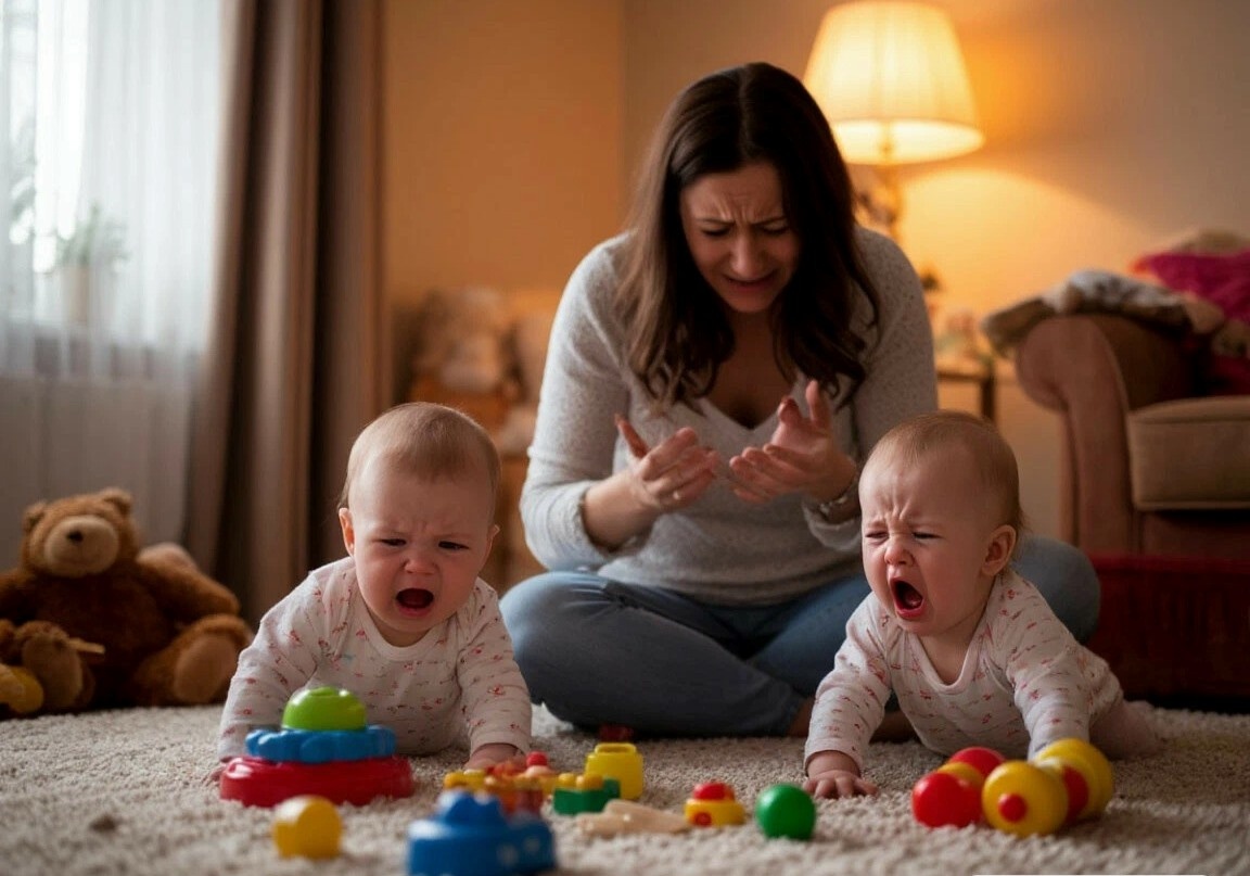 Вечер, комната полутёмная, запах ужина ещё витает, на полу валяется недопитая бутылочка. Один малыш рыдает и тянет руки, другой колотит ногами по ковру, расстроенный, что внимание ушло к брату. Вы стоите посреди комнаты и не знаете, к кому повернуться первым. Хочется обнять обоих, но руки всего две.