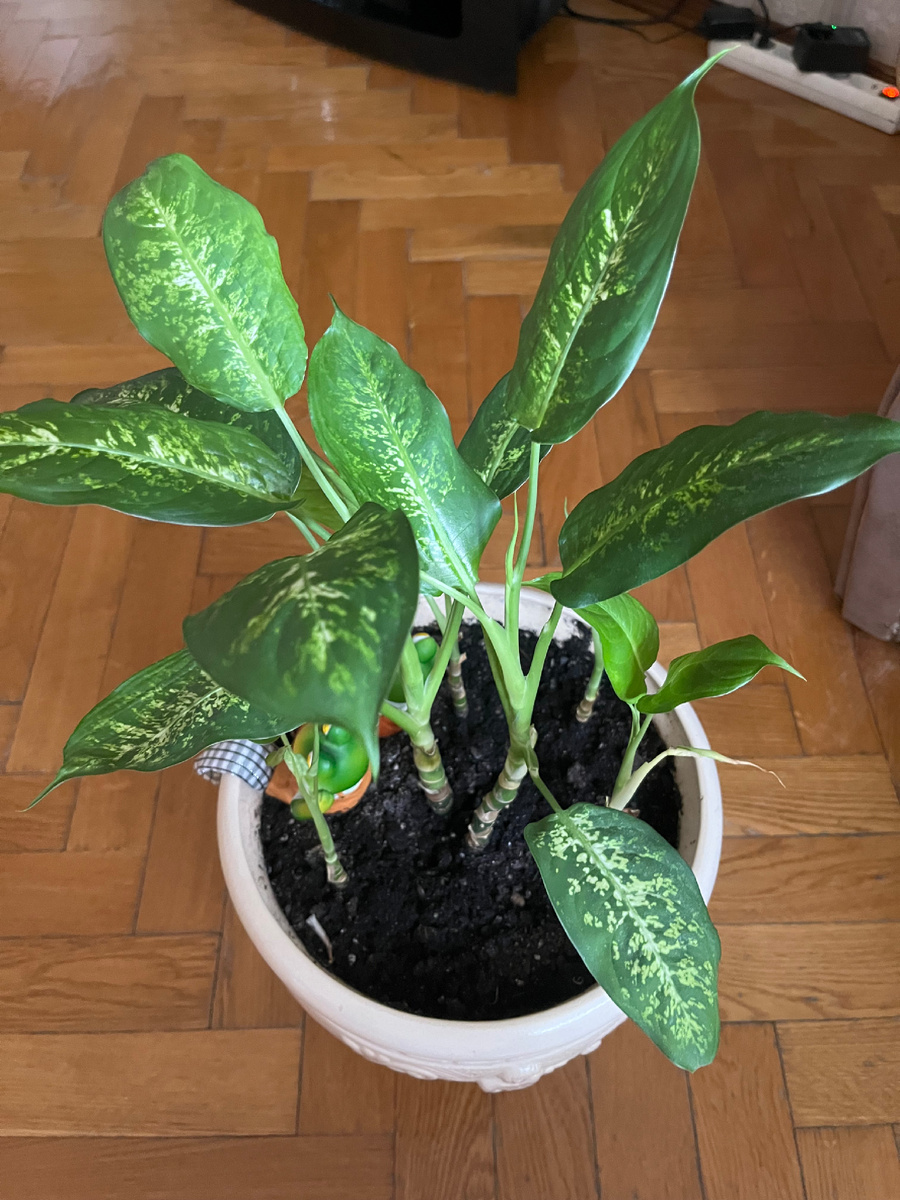 Ставлю диффенбахию в светлое место с рассеянным светом. Прямое солнце исключаю, чтобы листья не получили ожоги. В полутени растение выживает, но растёт хуже и теряет яркость окраски.