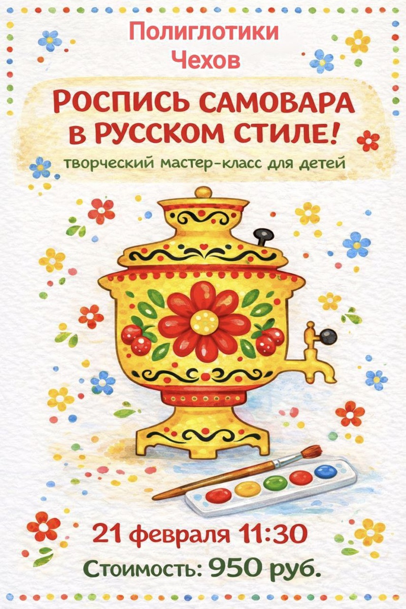 ! ΠΡΠΈΠ³Π»Π°ΡΠ°Π΅ΠΌ Π΄Π΅ΡΠ΅ΠΉ ΠΎΡ 5 Π»Π΅Ρ Π½Π° ΡΡΠΊΠΈΠΉ ΡΠ²ΠΎΡΡΠ΅ΡΠΊΠΈΠΉ ΠΌΠ°ΡΡΠ΅Ρ-ΠΊΠ»Π°ΡΡ ΠΏΠΎ ΡΠΎΡΠΏΠΈΡΠΈ ΡΠ°ΠΌΠΎΠ²Π°ΡΠ° Π² ΡΡΡΡΠΊΠΎΠΌ ΡΡΠΈΠ»Π΅! Π Π΅Π±ΡΡΠ°: πΏ ΠΏΠΎΠ·Π½Π°ΠΊΠΎΠΌΡΡΡΡ Ρ ΡΡΡΡΠΊΠΎΠΉ ΡΠΎΡΠΏΠΈΡΡΡ πΊ ΡΠ°ΡΠΏΠΈΡΡΡ ΡΠ²ΠΎΠΉ ΡΠΎΠ±ΡΡΠ²Π΅Π½Π½ΡΠΉ ΡΠ°ΠΌΠΎΠ²Π°Ρ(ΠΌΠ°ΡΠ΅ΡΠΈΠ°Π» ΠΈΠ·Π΄Π΅Π»ΠΈΡ:ΡΠ°Π½Π΅ΡΠ°, Π΄Π΅ΡΠ΅Π²ΠΎ) π ΡΠΎΠ·Π΄Π°Π΄ΡΡ ΠΏΡΠ°Π·Π΄Π½ΠΈΡΠ½ΡΠΉ ΡΡΠ²Π΅Π½ΠΈΡ ΠΊ ΠΠ°ΡΠ»Π΅Π½ΠΈΡΠ΅ β¨ ΡΠ°Π·ΠΎΠ²ΡΡΡ ΡΠ°Π½ΡΠ°Π·ΠΈΡ ΠΈ Ρ