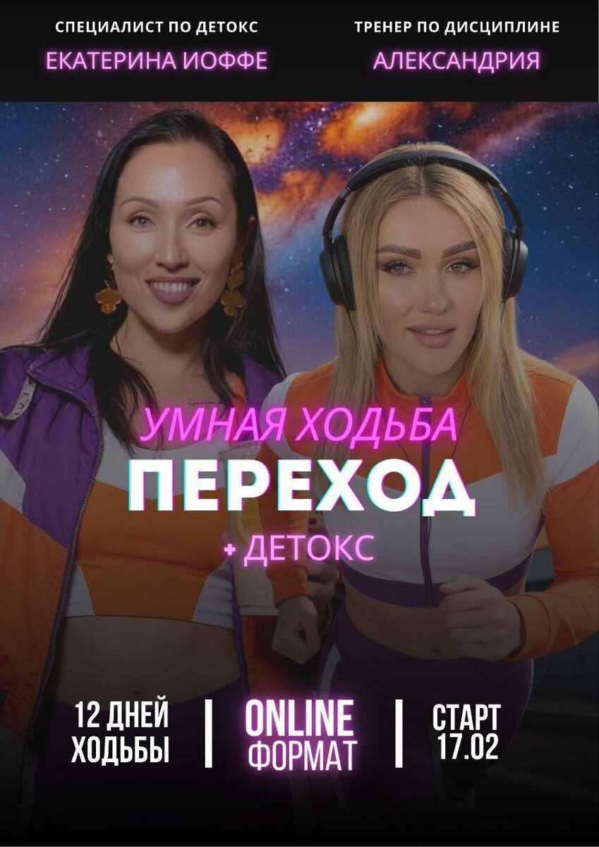 Некоторые его просто пережили. С телом «на удержании». С головой в шуме. С нервной системой на костылях из кофе, сахара и терпения. Мы уже в новом году. Но внутри всё ещё живёт прошлый: усталость, застрявшие эмоции, лишнее (в том числе вес), отёки, тяжесть, апатия. 👉 Поэтому февраль объявляется МЕСЯЦЕМ ДЕТОКСА. ❗️Что такое Переход (если ты слышишь впервые) Переход — это не марафон и не просто прогулки. Это система очищения и развития сознания через умную ходьбу. Основа Перехода — ежедневная ходьба 7 км в заданном ритме под специальные авторские аудиопрактики. Пока ты идёшь: — тело запускает лимфу и очищение — психика стабилизируется — подсознание выходит из хаоса Сидя и «осознавая» — это не работает. Тело очищается в движении. 🔥 17 ФЕВРАЛЯ мы запускаем МЕГА-ДЕТОКС Александрия (2.2) — глубина, дисциплина сознания, работа с психикой Екатерина Йоффе (7.7) — питание, детокс тела, биохимия и восстановление ресурса Это ядерная смесь:умная ходьба + питание + психика + поле. Если