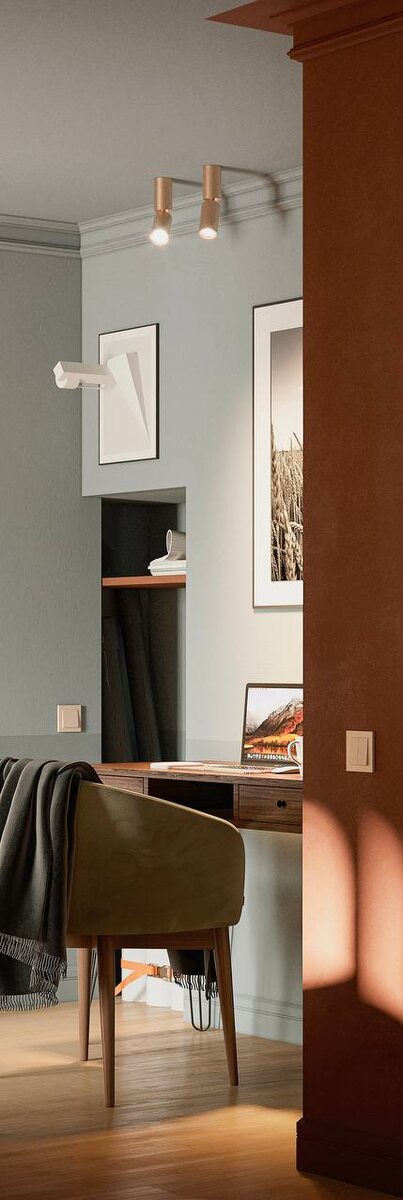 ⠀ Мы думаем, что сначала видим мебель, композицию, детали. Но тело считывает другое — температуру, плотность, глубину. ⠀ Цвет — это не украшение. И не приём. ⠀ Это способ удержать пространство в состоянии. ⠀ Иногда цвет может быть тихим — почти фоном. Но именно он держит границы, собирает ритм, не даёт пространству распасться на предметы. ⠀ Когда цвет доминирует — мы это замечаем. Когда он удерживает — мы просто чувствуем устойчивость. ⠀ «Здесь спокойно». «Здесь можно дышать». «Здесь мне хорошо». ⠀ Я работаю с цветом не как с палитрой. А как с опорой. ⠀ Форма появляется позже. Практика присутствия. Фрагмент нашей первый квартиры на Лермонтовском проспекте. Визуализация.