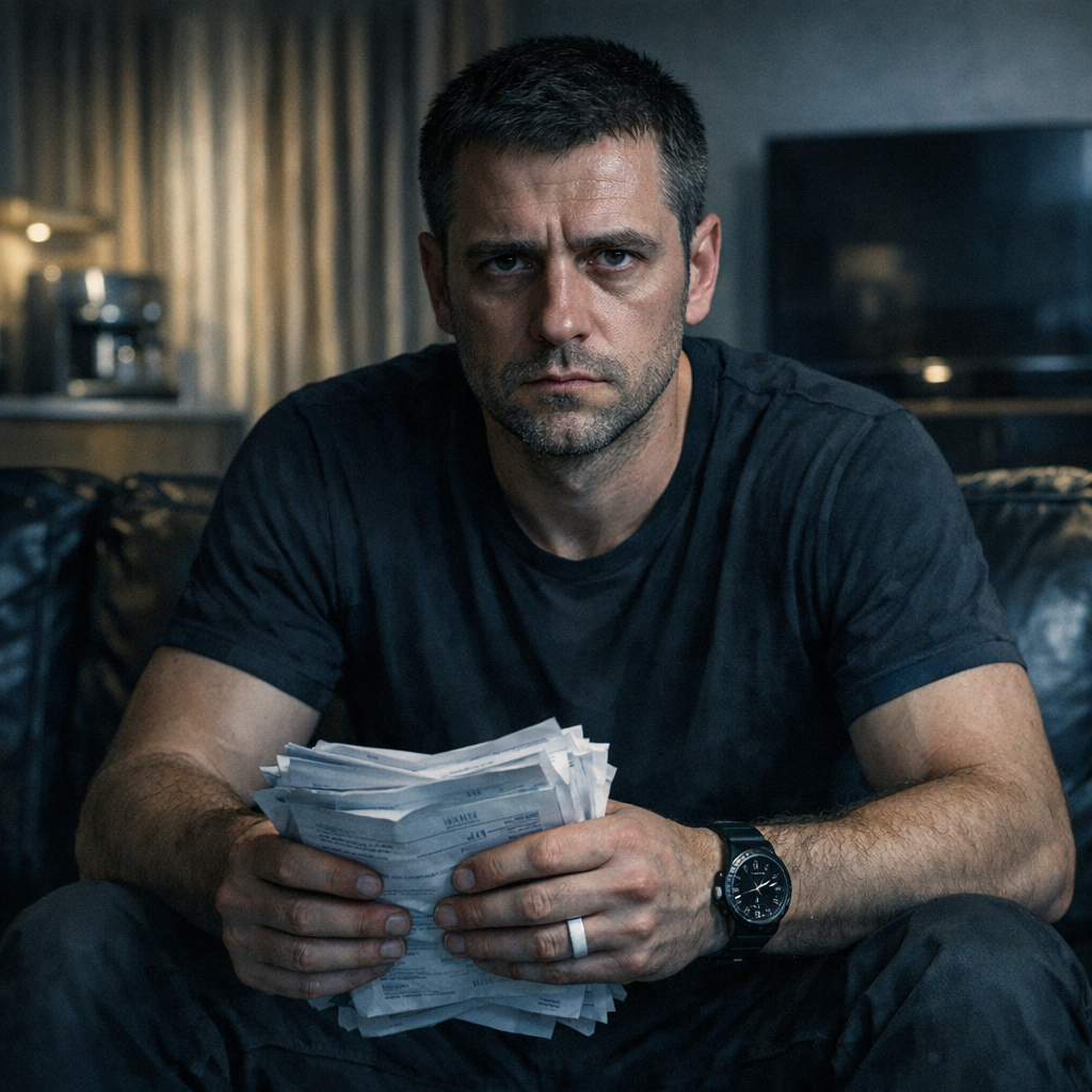 Четырнадцатый месяц. Приказ о возвращении. Борт до базы, потом автобус до города. Я стоял на КПП с сумкой, в которой — форма, документы и папка. В папке — распечатка банковской выписки. Тридцать восемь страниц.