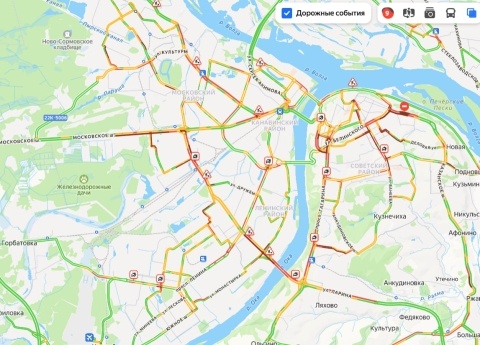 Вечером в Нижнем Новгороде зафиксированы предельные заторы на дорогах. По данным на 17:45 уровень загруженности улично-дорожной сети составил 10 баллов из 10. Причиной стали снегопад, ДТП и продолжающиеся работы на отдельных участках.