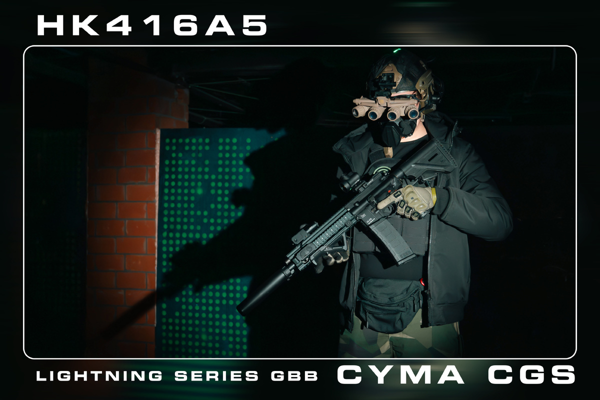Есть модели страйкбольного оружия, про которые спрашивают «ну, может быть, когда-нибудь куплю». А есть такие, за которыми выстраивается очередь, стоит только пройти слуху о поставке. Cyma CGS HK416A5 Lightning Series GBB — как раз из второй категории. Это не очередная «просто 416-я» на аккумуляторах. Это полноценный газовый карабин (GBB) с правильным характером, отличной сборкой и, что самое главное, системой CGS внутри. Разбираемся, для кого эта винтовка, как она ведет себя в игре и почему вокруг неё столько шума. Первое, что чувствуешь, когда берешь её в руки — это вес и цельность. Cyma сделала ставку на ощущения: корпус полностью металлический, детали подогнаны идеально. Никакого «дребезжания» или ощущения пластиковой игрушки. В руках она лежит как монолитная боевая платформа. Это современная модификация HK416A5 — строгая, «злая» и узнаваемая. Эргономика: рай для левши и правши Серия A5 славится своим удобством, и Cyma перенесла это в страйкбол без потерь. Всё управление здесь двуст