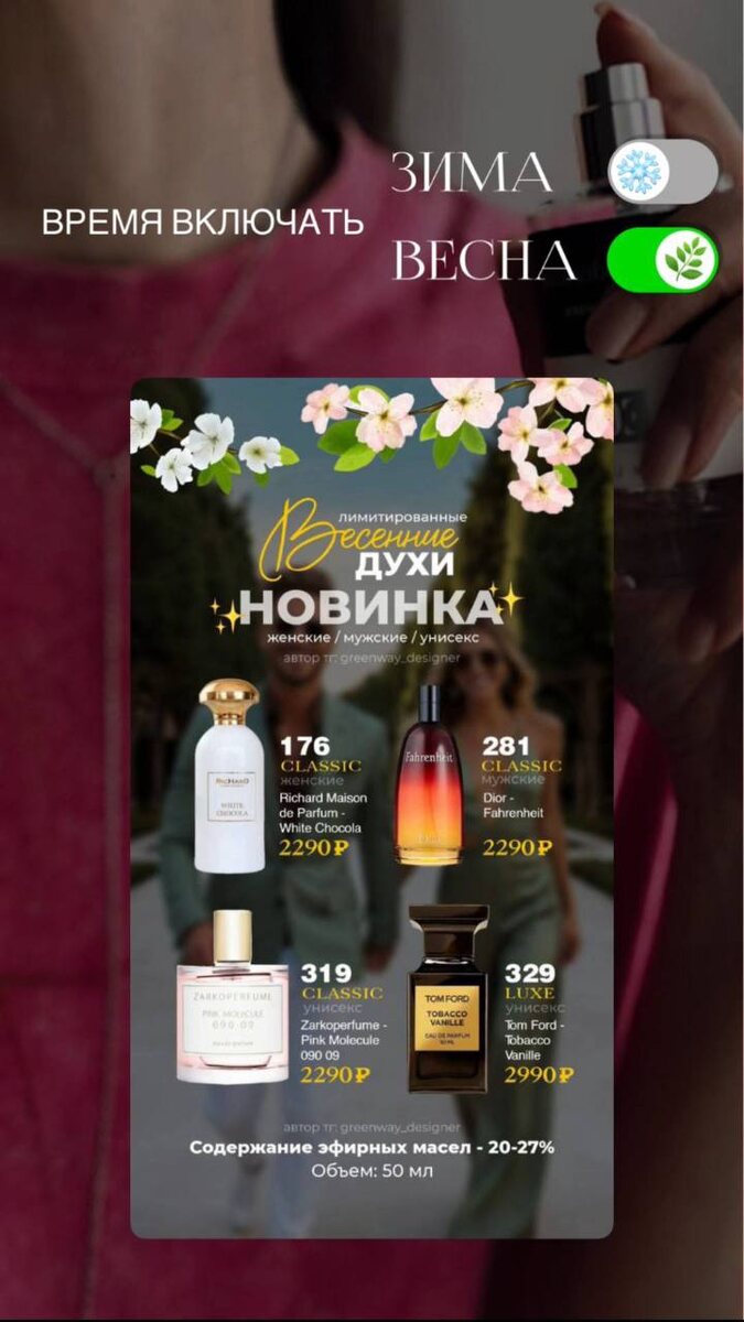 🧡 Вы можете пойти в брендовый магазин и оставить там 15–25 тысяч за аромат. Это нормально. Это выбор. А можете сделать иначе. Завтра выходят лимитированные весенние новинки — 50 мл, высокая концентрация масел (20–27%), стойкость и шлейф на уровне люкса. 💰И цена — 2290–2990 ₽. Но я всегда смотрю глубже. Покупать просто как клиент — это один уровень. Покупать на свой ID — это уже мышление предпринимателя. Каждый аромат, который вы берёте на свой ID, — это: 🟠ваш личный маркетплейс 🟠ваша клиентская база 🟠ваш будущий товарооборот 🟠ваша финансовая стратегия Я давно не мыслю категориями «купить дешевле». Я мыслю категориями «создавать актив». Завтра покажу новинки ближе. Если хотите оформить на свой ID и открыть для себя другой уровень — напишите мне в личные сообщения слово ВЕСНА 💐 Самостоятельно купить ЗДЕСЬ