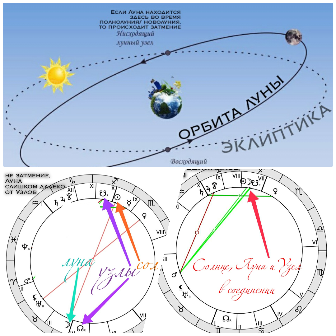 Поэтому, когда Луна удаляется от узла по долготе (то, что показывает астрологическая программа), её широта (отклонение вверх/вниз от эклиптики) постепенно увеличивается.