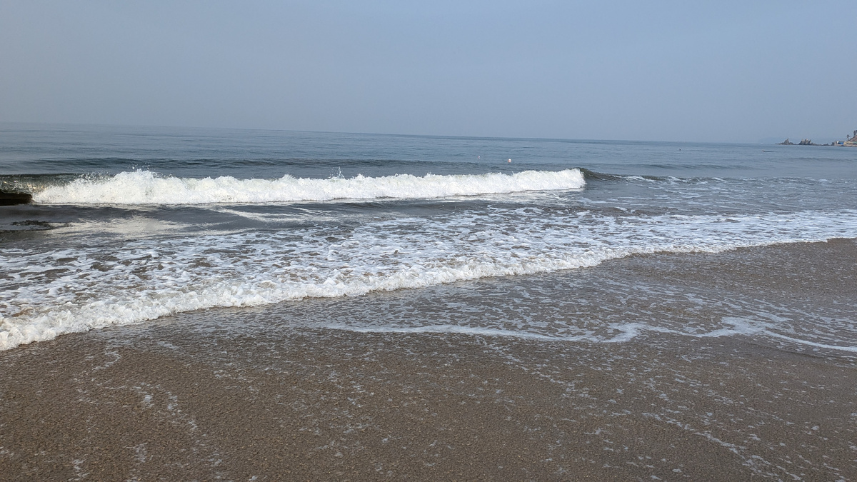 Вышли на пляж как раз к закату. Успели искупаться в волнах и сделать фото.