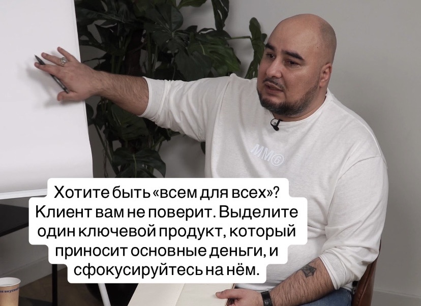 🛑 Это стратегическая ошибка. На разборе я увидел её в чистом виде: длинный список услуг размывает фокус и убивает доверие. Клиент думает: «Он во всем этом разбирается? Сомнительно».