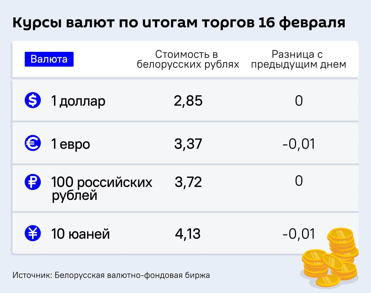 Курсы валют в Беларуси по итогам сегодняшних торгов.