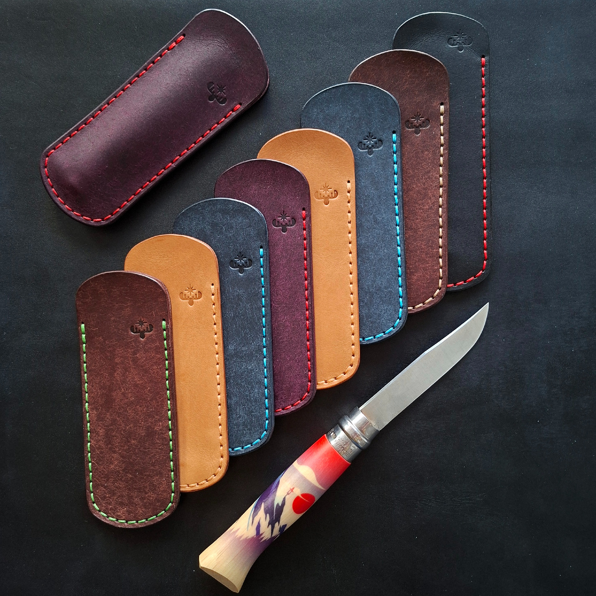 Недавно я выполнял заказ на чехлы для Opinel 8. Нужно было сделать много, но я сделать чуть больше на случай, если накосячу. Но я не накосячил, поэтому оставшиеся чехлы выставляю в продажу по абсолютно разумной цене.
