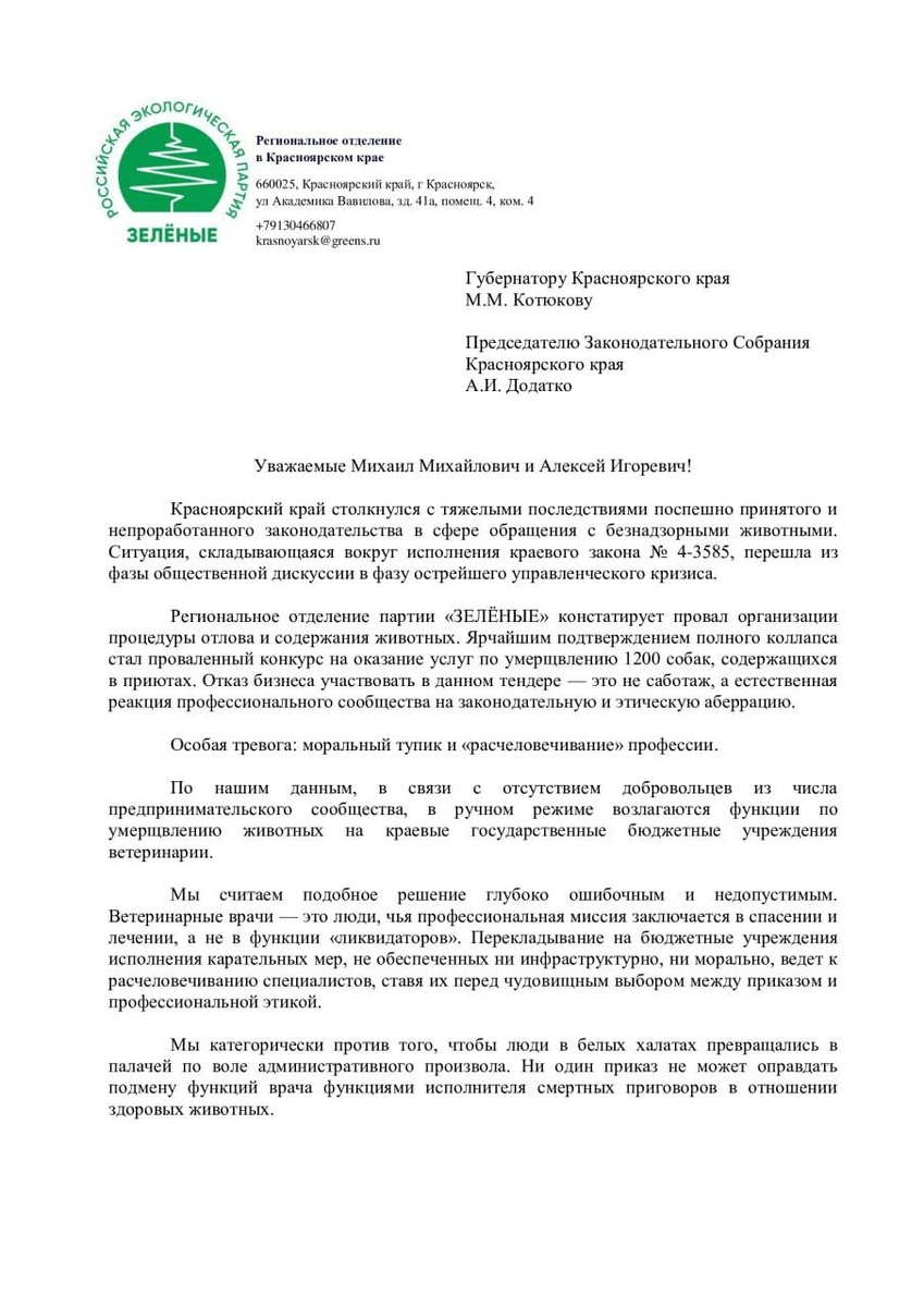 ситуацию Владислав Алейников, лидер «ЗЕЛЁНЫХ» Красноярского края. «ЗЕЛЁНЫЕ» направили обращение губернатору края Михаилу Котюкову и