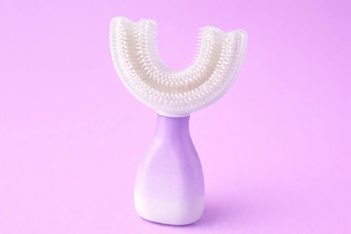 На маркетплейсах часто можно увидеть большой ассортимент зубных щёток. Среди них можно найти необычные варианты, например, щётки-бананы, 3D, музыкальные, с подсветкой. Но самыми популярными остаются щётки-капы. Производители обещают: они эффективно удалят налёт и превратят рутину чистки зубов в игру. Звучит заманчиво, но действительно ли такая щётка способна заменить обычную? По своей форме она напоминает латинскую букву U — потому её ещё называют U-образной. Производители подчёркивают преимущество такой щётки: она позволяет чистить зубы сразу во всех направлениях. Капой малыш может пользоваться самостоятельно. Кроме того, это помогает сэкономить время и не заскучать ребёнку. U-образные щётки делают из мягкого силикона. У основания есть небольшая ручка, а в рабочей области расположены специальные каналы, по которым распределяется зубная паста. Алгоритм использования щётки-капы очень прост: 1. нанести небольшое количество зубной пасты на внутреннюю поверхность щётки; 2. аккуратно вста