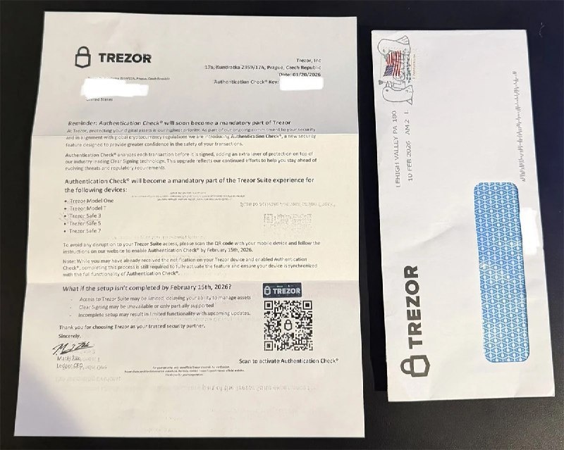 ☠ Владельцев кошельков Trezor и Ledger атакуют мошенники, рассылая фишинговые БУМАЖНЫЕ письма с требованием срочно пройти «проверку