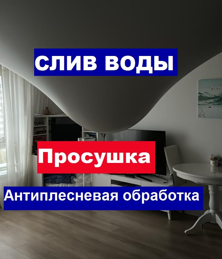 Натяжной потолок удерживает большой объём жидкости (до 100 л на 1 м²), но без грамотного слива и просушки возможны серьёзные последствия: Что мы делаем: Почему выбирают нас: Не пытайтесь слить воду самостоятельно! Неправильные действия могут привести к разрыву потолка и затоплению соседей снизу. Звоните прямо сейчас!